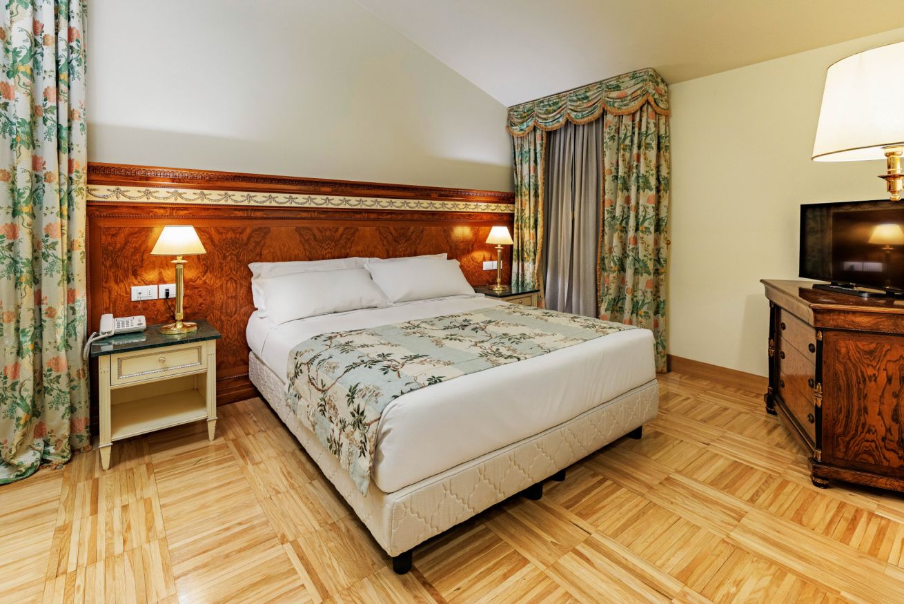 La Suite è il massimo dell'eleganza e del comfort, ideali per chi desidera un soggiorno esclusivo e raffinato. Composte da due ambienti separati, includono una spaziosa zona salottino con un comodo e prezioso divano, perfetto per rilassarsi in totale privacy. Arredate con mobili di pregio, offrono un bagno moderno con doccia e/o vasca per un’esperienza di lusso. Dotate di tutti i comfort, come TV moderna, minibar, cassaforte e phon, le Suite sono pensate per rendere ogni momento indimenticabile.